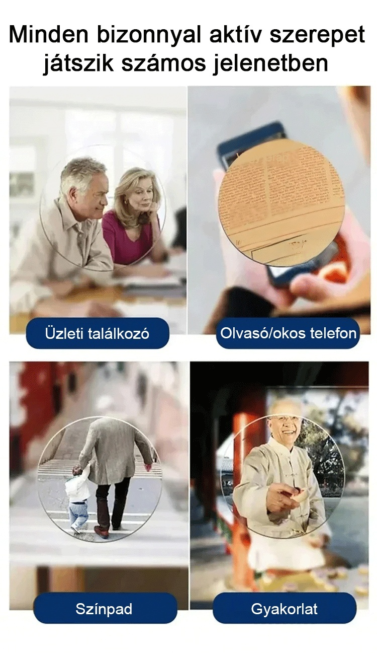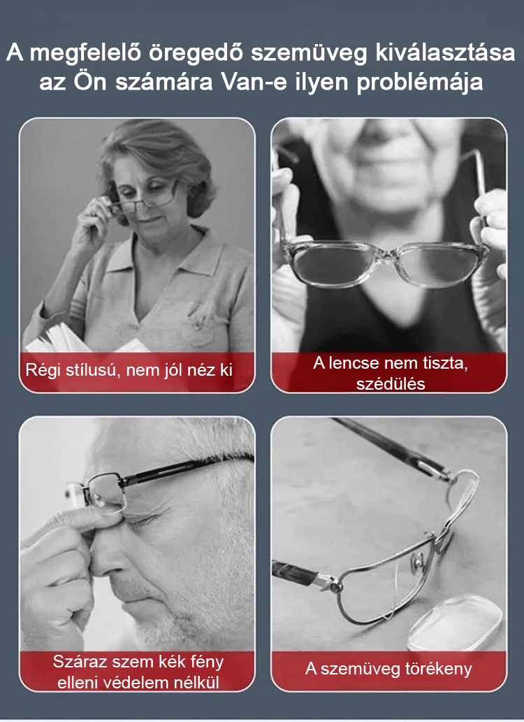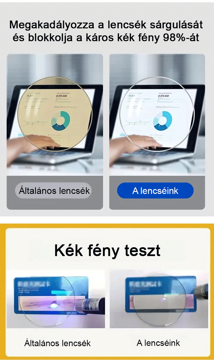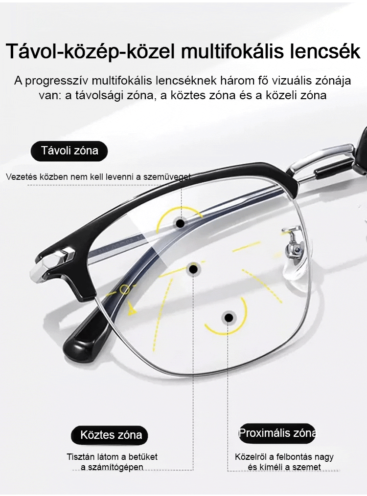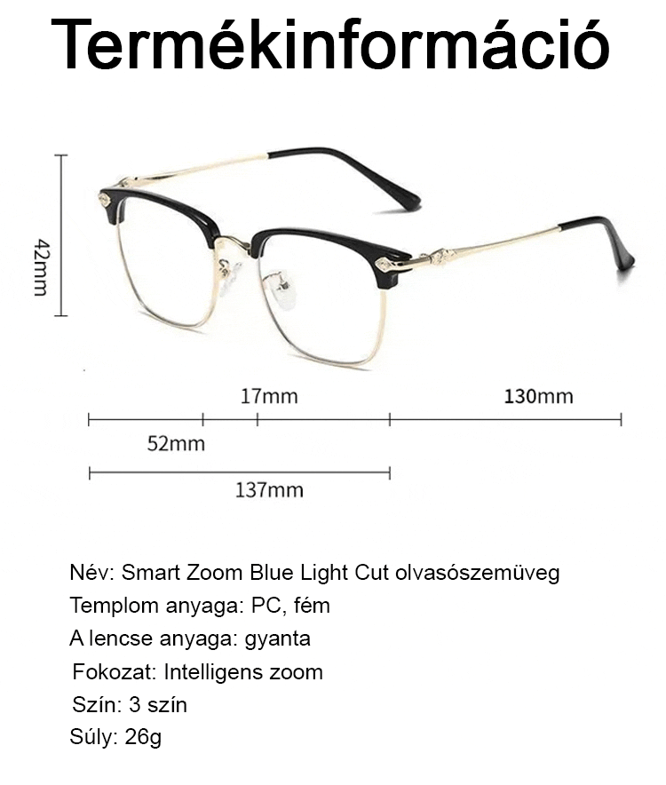 Automatikus zoom szemöldökkerettel ellátott, Ultrakönnyű kialakítás, látásvizsgálat nélkül – 99%-os kékfény-védelemmel.